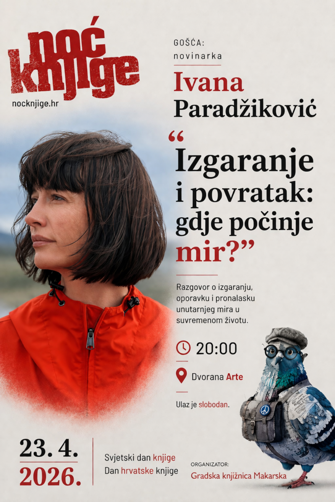 Noć knjige 2026. – “Izgaranje i povratak: gdje počinje mir?” gostovanje Ivane Paradžiković